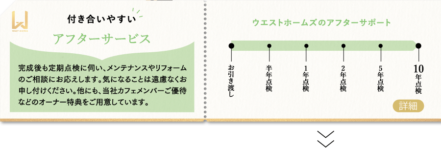 住み始めた時の高い性能が損なわれることのないよう品質管理の行き届いた構造材と工法を採用し、耐久性を保つためにお引き渡し後の定期的なアフターメンテナンスをおこなっています。